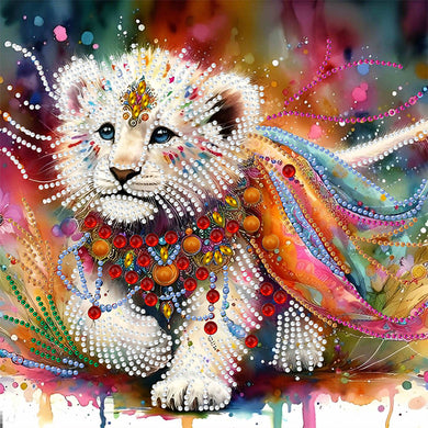 Painted Indian Lion 30*30CM(Canvas) Partial Special Shaped Drill Diamond Painting
