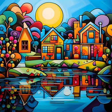 Colorful House 40*40CM(Canvas) Full Round Drill Diamond Painting