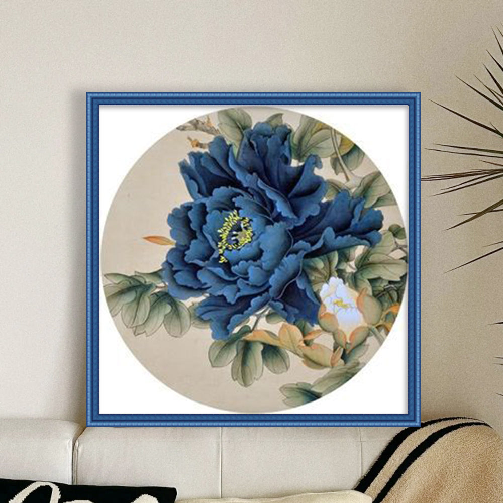 Yishu - Blue Peony - 40*40CM 11CT 3 Stamped Cross Stitch