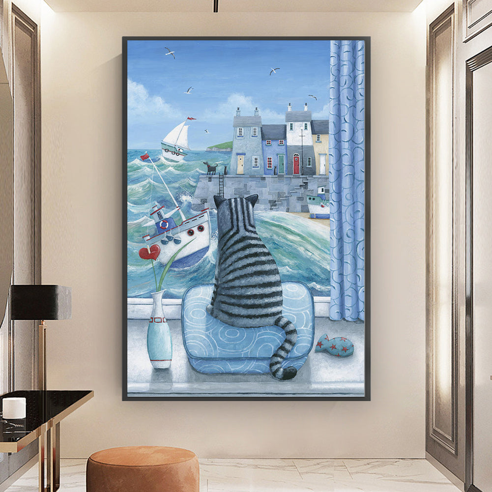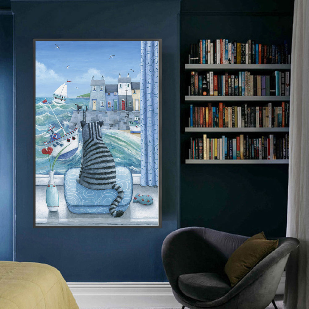 Yishu - Cat Looking Out The Window - 50*75CM 11CT 3 Stamped Cross Stitch