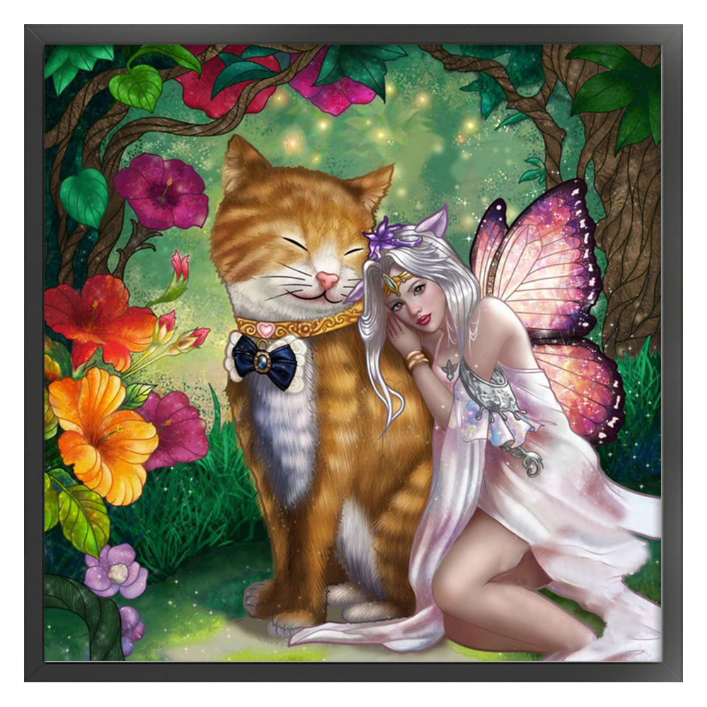 Yishu - Elf And Big Cat - 50*50CM 11CT 3 Stamped Cross Stitch