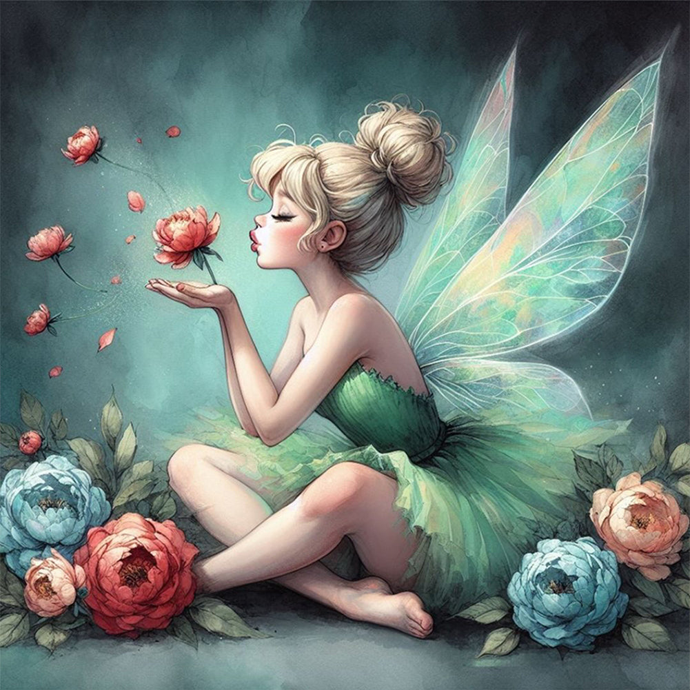Yishu - Green Fairy Holding Flowers - 50*50CM 11CT 3 Stamped Cross Stitch