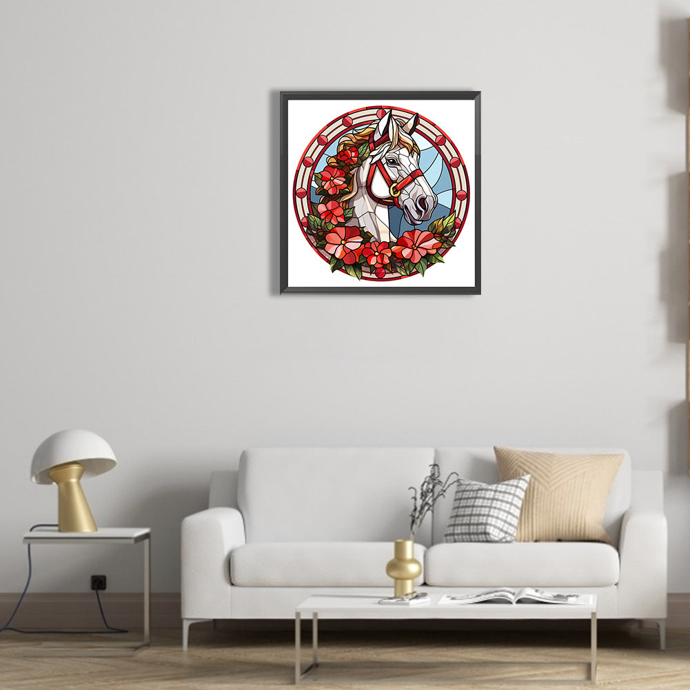Christmas Red Flower Horse Glass Painting 30*30CM(Canvas) Full Round Drill Diamond Painting