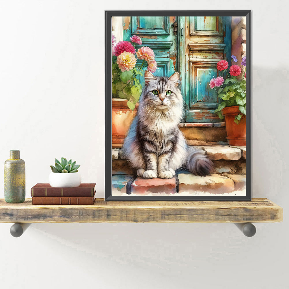 Retro Style Cat 40*50CM(Canvas) Full Round Drill Diamond Painting
