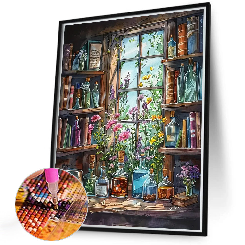Window Plant 40*50CM(Canvas) Full Round Drill Diamond Painting