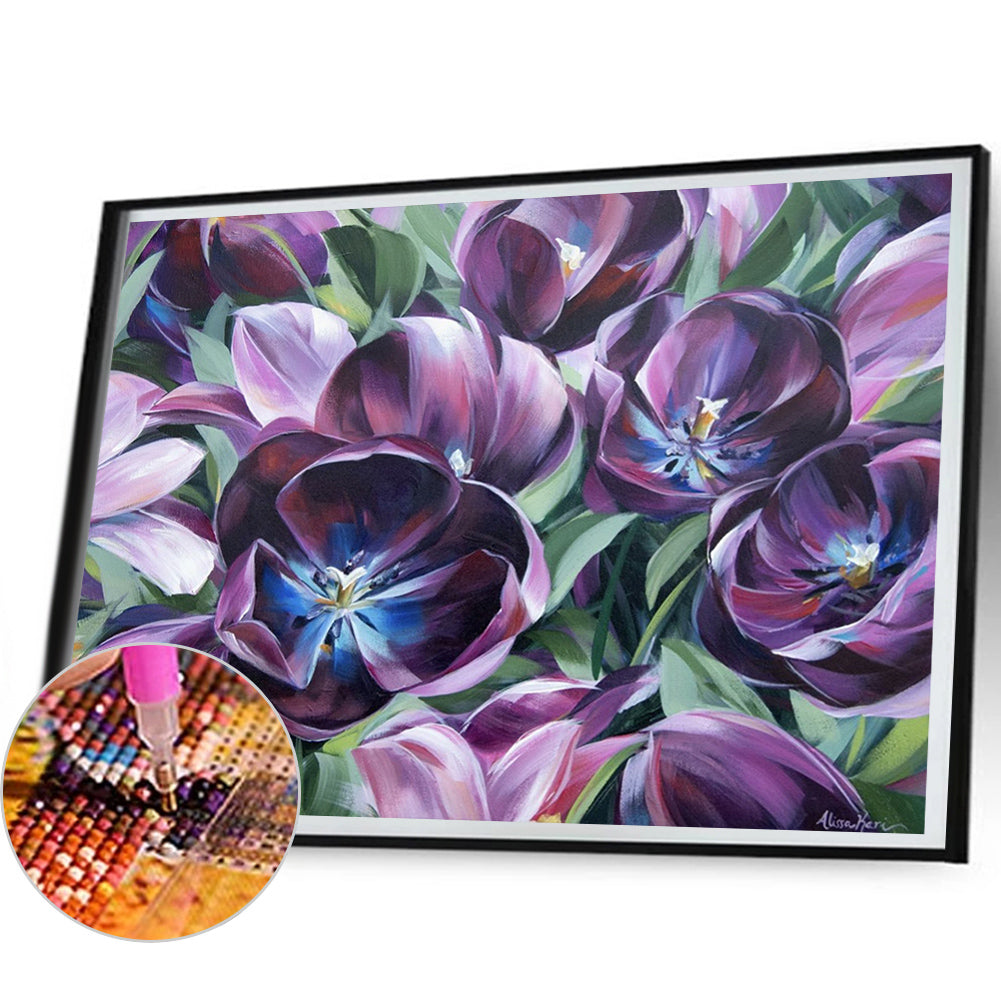 Purple Tulips 50*40CM(Picture) Full Round Drill Diamond Painting
