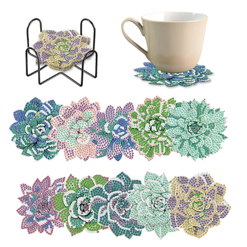 10 Pcs Wooden Diamond Painting Coaster Kit with Holder for Beginners (Succulent)