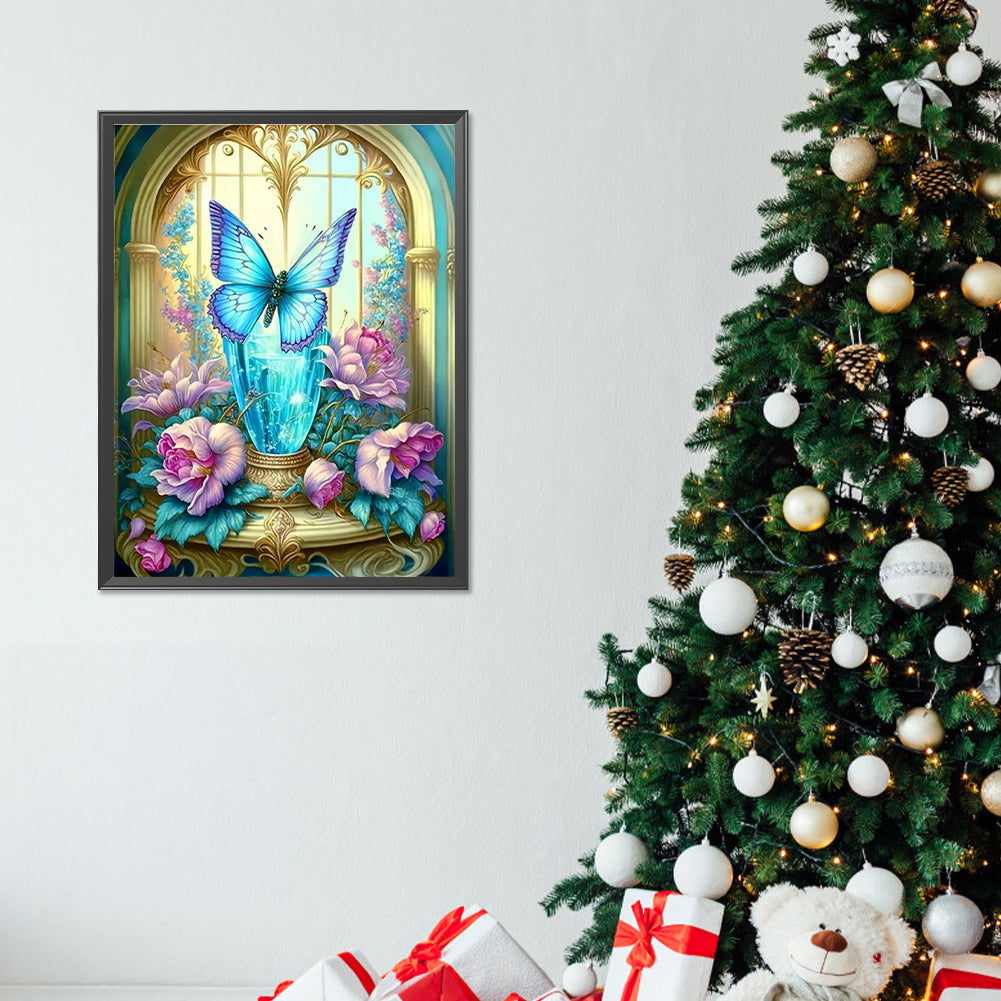 Blue Butterfly Crystal Glass 30*40CM(Canvas) Full Round Drill Diamond Painting
