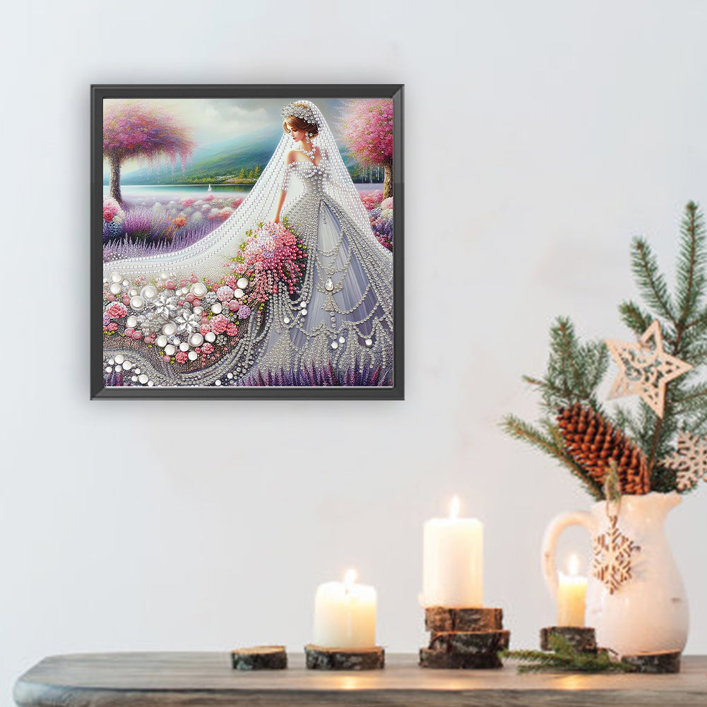 Wedding Dress Girl 30*30CM(Canvas) Partial Special Shaped Drill Diamond Painting