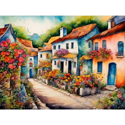 Countryside Town 40*30CM(Canvas) Full Round Drill Diamond Painting