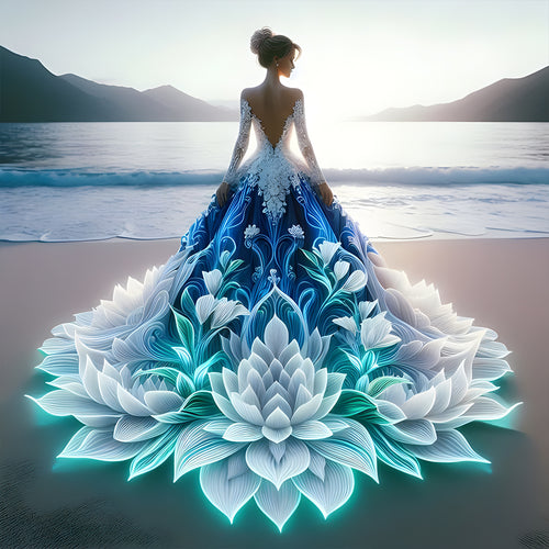 • Fluorescent Floral Dress (Seaside) 40*40CM(Canvas) Full Round Drill Diamond Painting