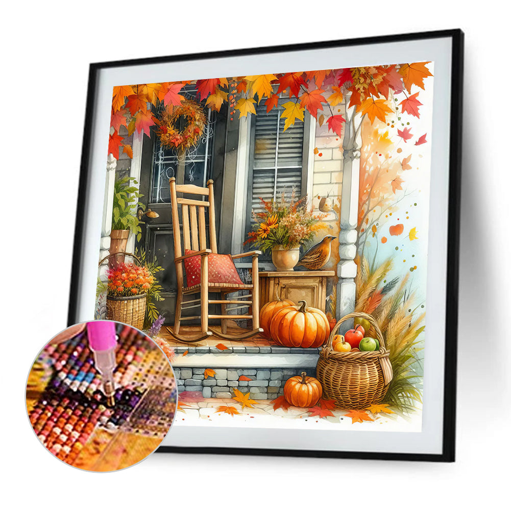 Autumn Doorway Chair 40*40CM(Canvas) Full Round Drill Diamond Painting