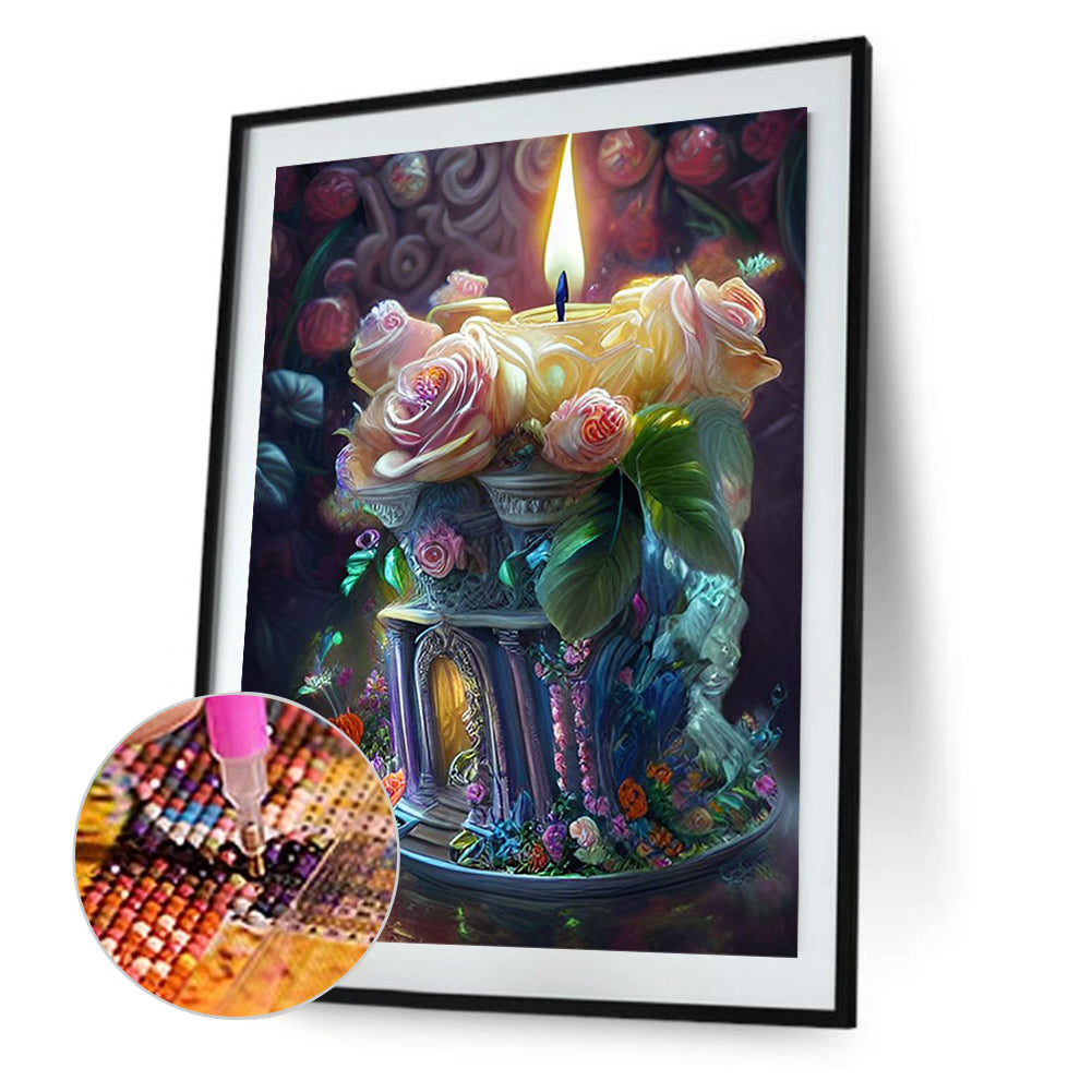 Flower Candle 30*40CM(Canvas) Full Round Drill Diamond Painting
