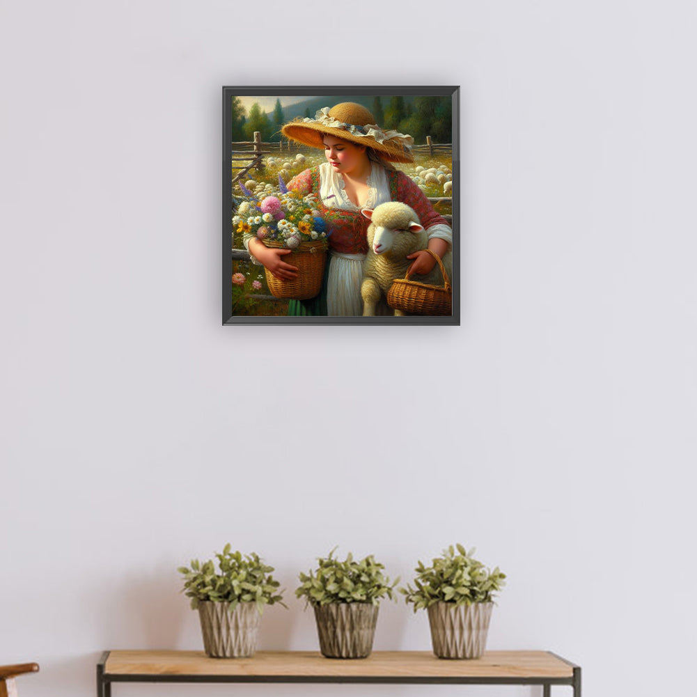 Oil Painting-Style Farm Woman 30*30CM(Canvas) Full Round Drill Diamond Painting