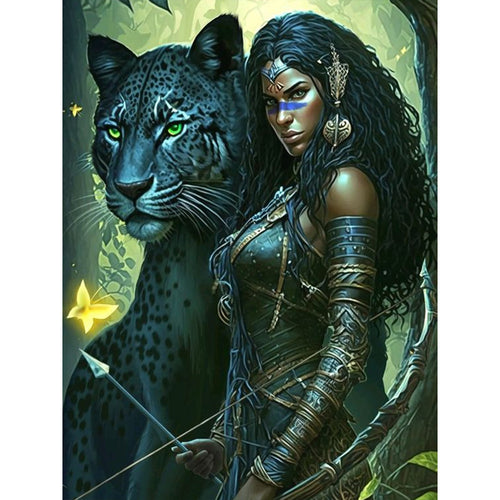 Woman And Leopard 30*40CM(Canvas) Full Round Drill Diamond Painting