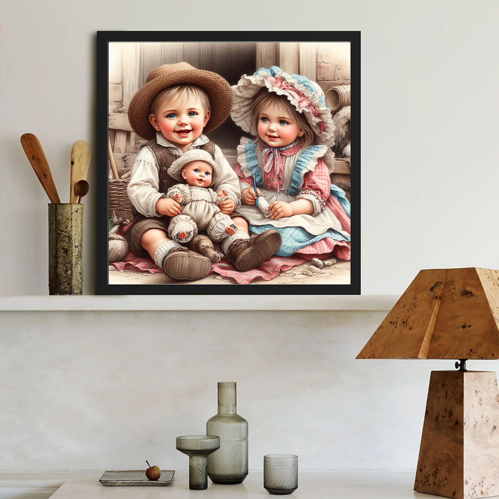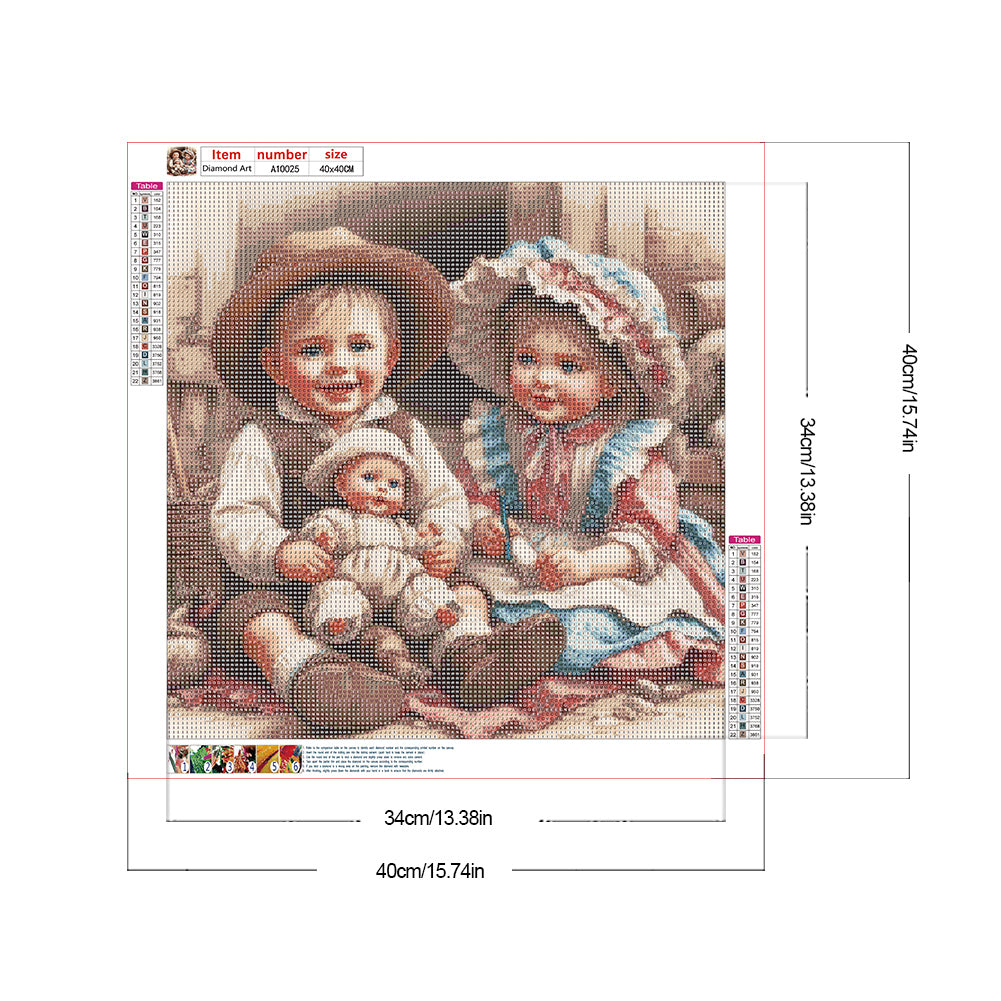 Boy And Girl With Dolls 40*40CM(Canvas) Full Round Drill Diamond Painting