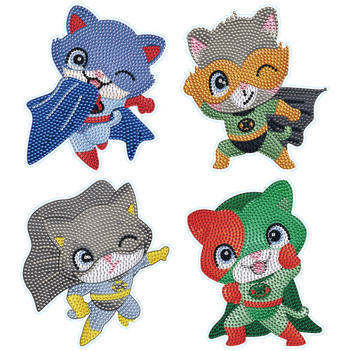 4 PCS DIY Supercat Cartoon Stickers Diamonds Painting Sticker for Adult Beginner