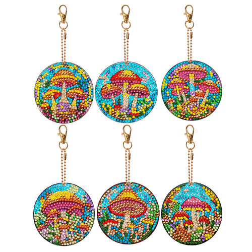 6 PCS Double Sided Special Shape Diamond Painting Keychain Pendant (Mushroom)