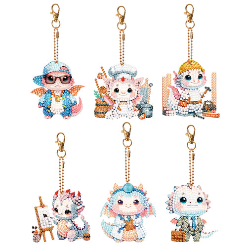 6 Pcs Double Side Speicial Shape Dragon Diamond Painting Keychain for Home Decor