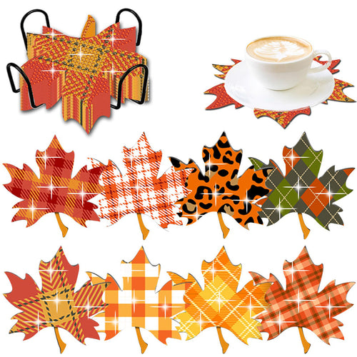 8 PCS Acrylic Diamond Painting Art Coaster Kit with Holder for Adult(Maple Leaf)