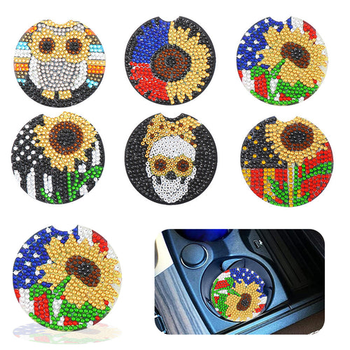 6PCS Double Sided Special Shape Diamond Painting Keychain (Sunflower Buggy)