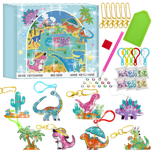 8 Pcs Double Side Full Drill Diamond Painting Art Keychain Kit (Desert Dinosaur)