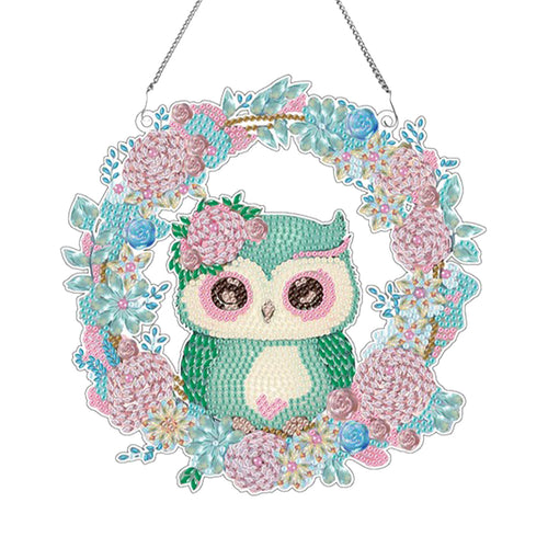 Acrylic Single-Sided 5D DIY Diamond Painting Hanging Pendant (Wreath Owl)