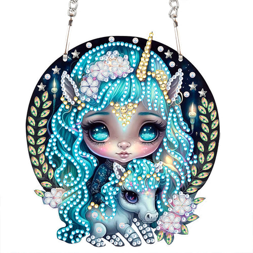 Acrylic Single-Sided 5D DIY Diamond Painting Hanging Pendant (Girl and Unicorn)
