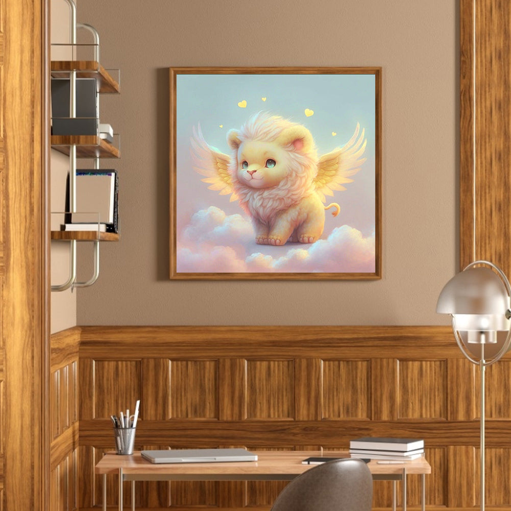 Light Yellow Lion With Angel Wings 30*30CM(Canvas) Full Round Drill Diamond Painting
