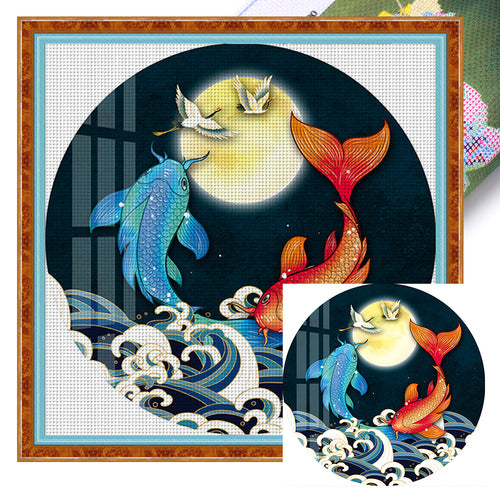 Yishu - Goldfish In A Tank - 50*50CM 11CT 3 Stamped Cross Stitch