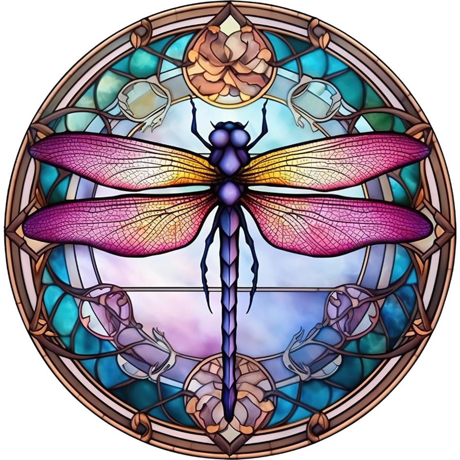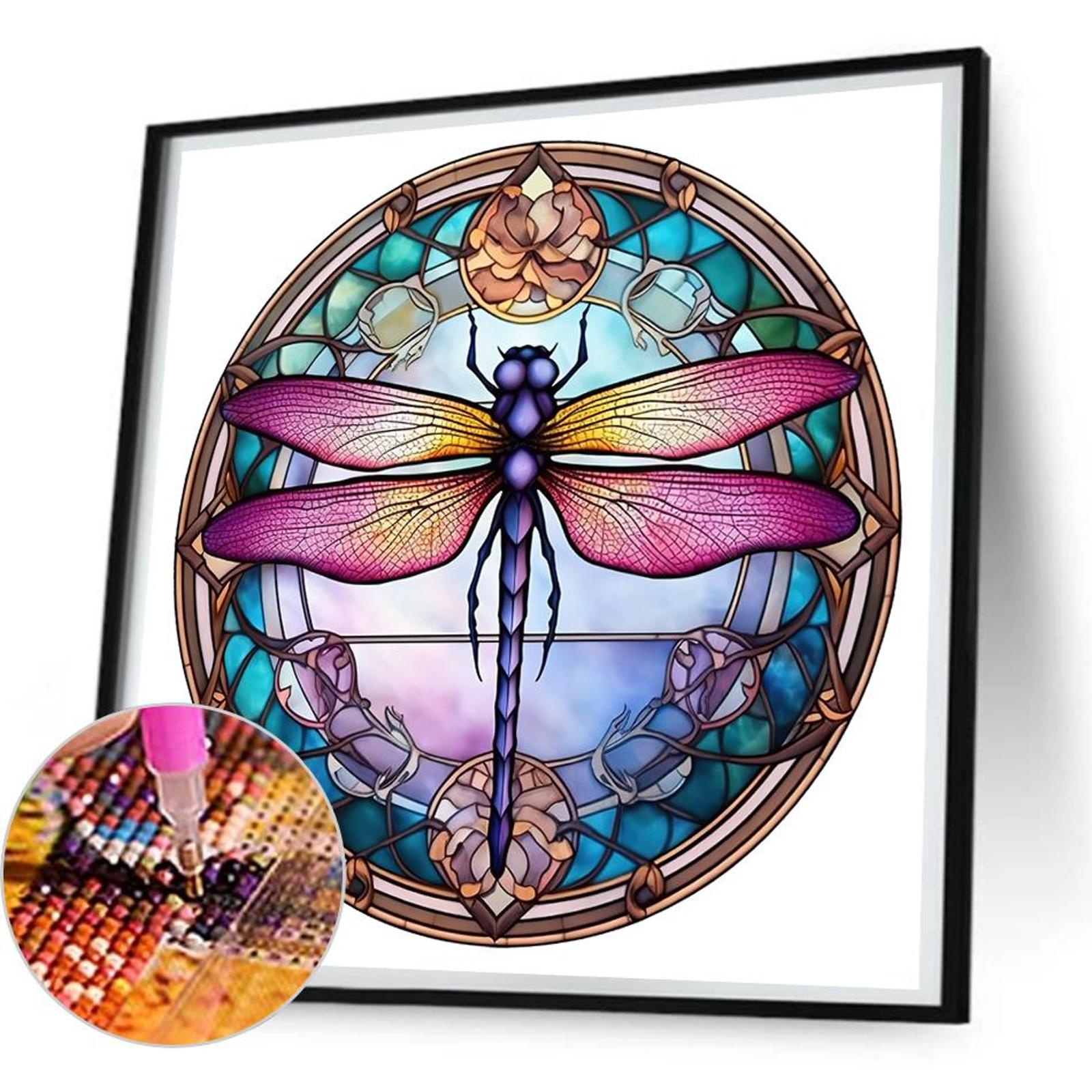 Dragonfly Glass Painting 30*30CM(Canvas) Full Round Drill Diamond Painting