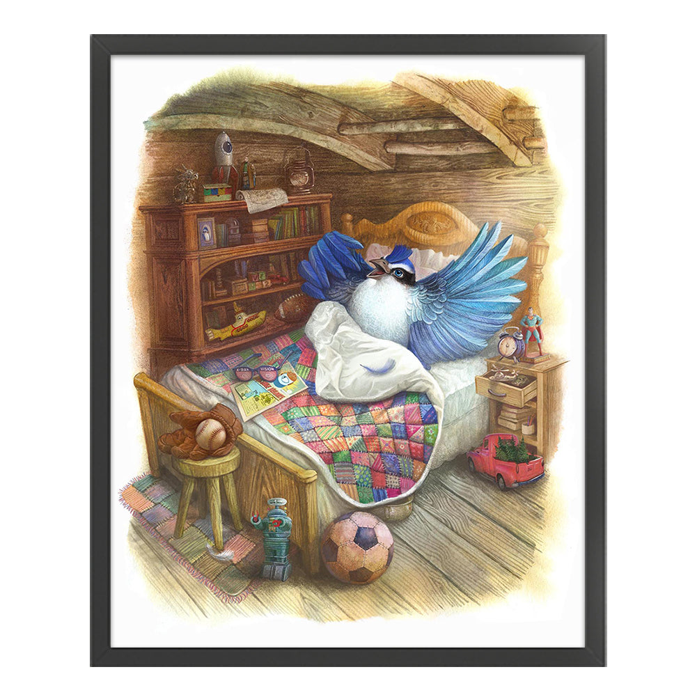 Huancan - Bird: White-Browed Blue Flycatcher - 40*50CM 14CT 2 Stamped Cross Stitch