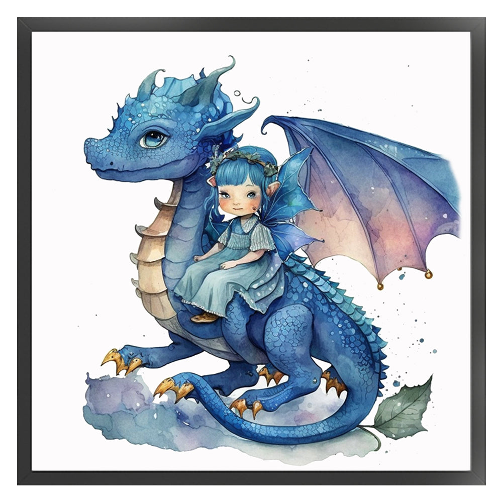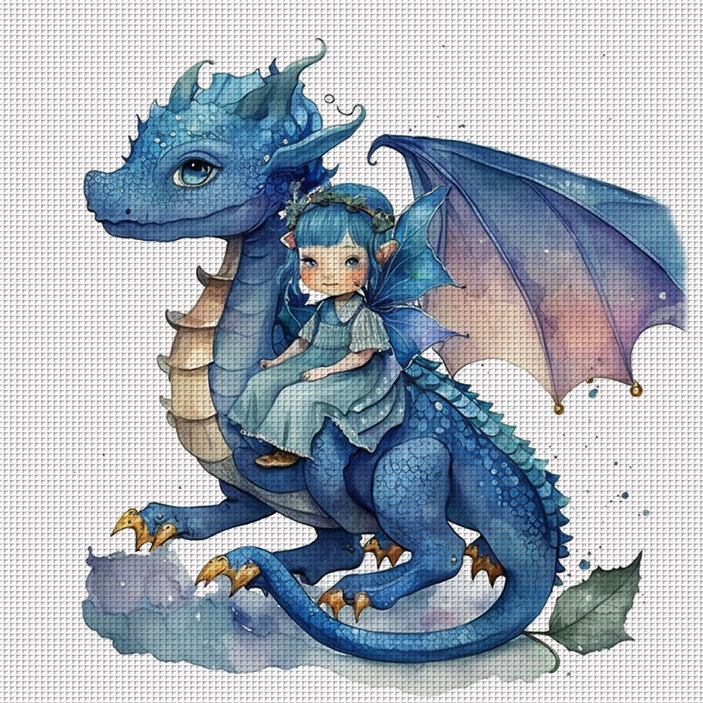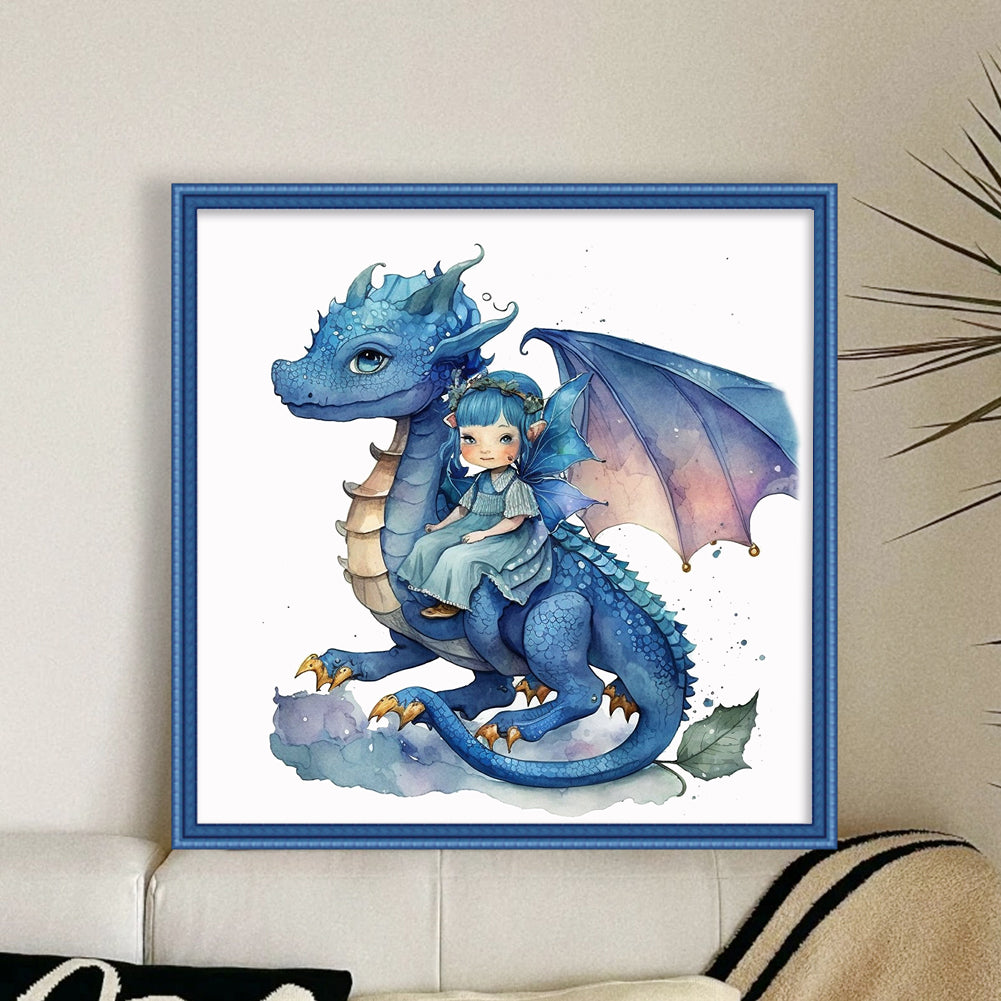 • Load image into Gallery viewer, Huancan - Blue Dragon And Girl - 50*50CM 11CT 3 Stamped Cross Stitch