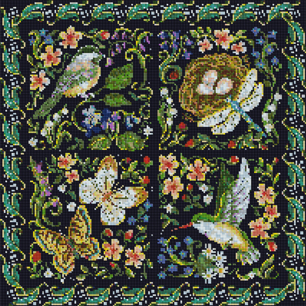 Huancan - Creatures And Flowers - 50*50CM 11CT 3 Stamped Cross Stitch
