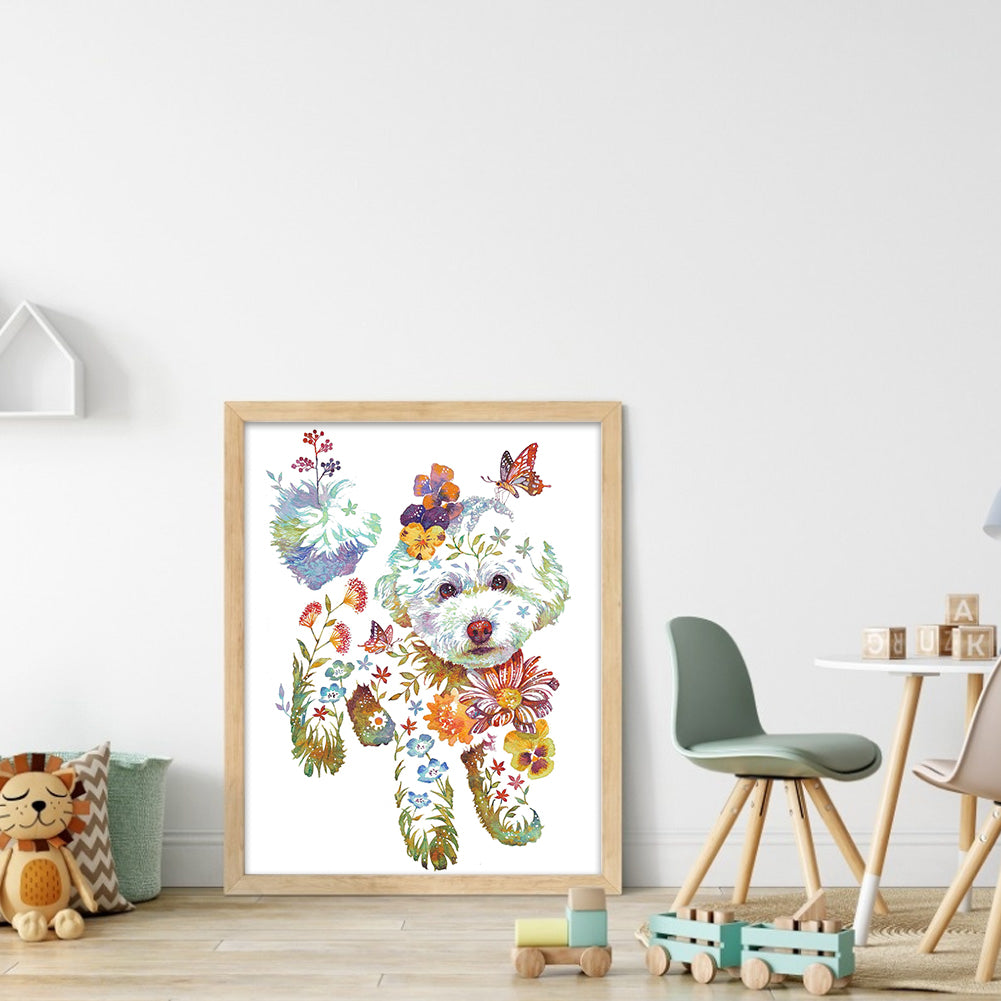 Huancan - Flower And Animal - Puppy - 50*60CM 9CT 4 Stamped Cross Stitch