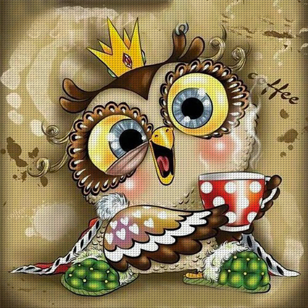 Huancan - Owl Drinking Coffee - 40*40CM 11CT 3 Stamped Cross Stitch