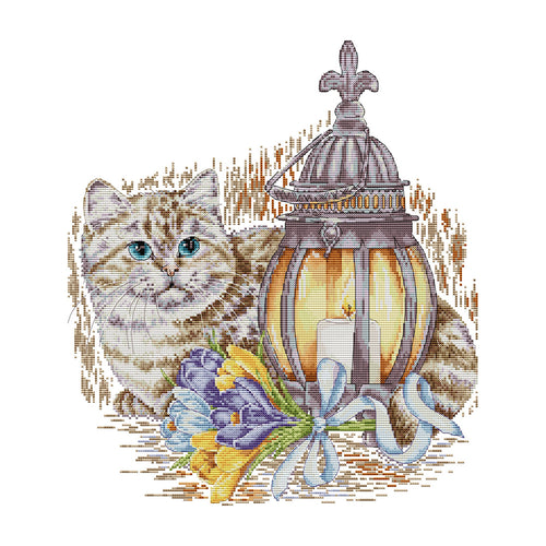 Joy Sunday - The Cat And The Lamp - 41*44CM 14CT 2 Stamped Cross Stitch