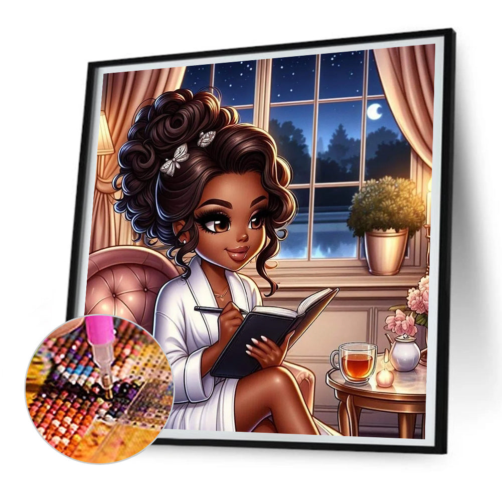 Black Beauty Reading 30*30CM(Canvas) Full Round Drill Diamond Painting