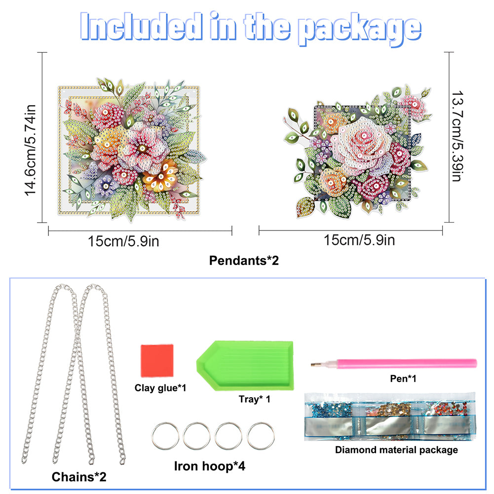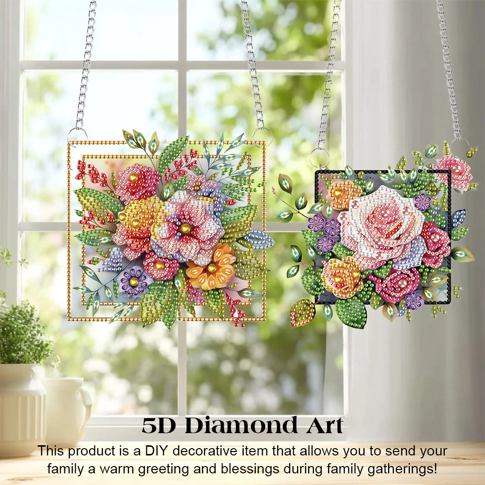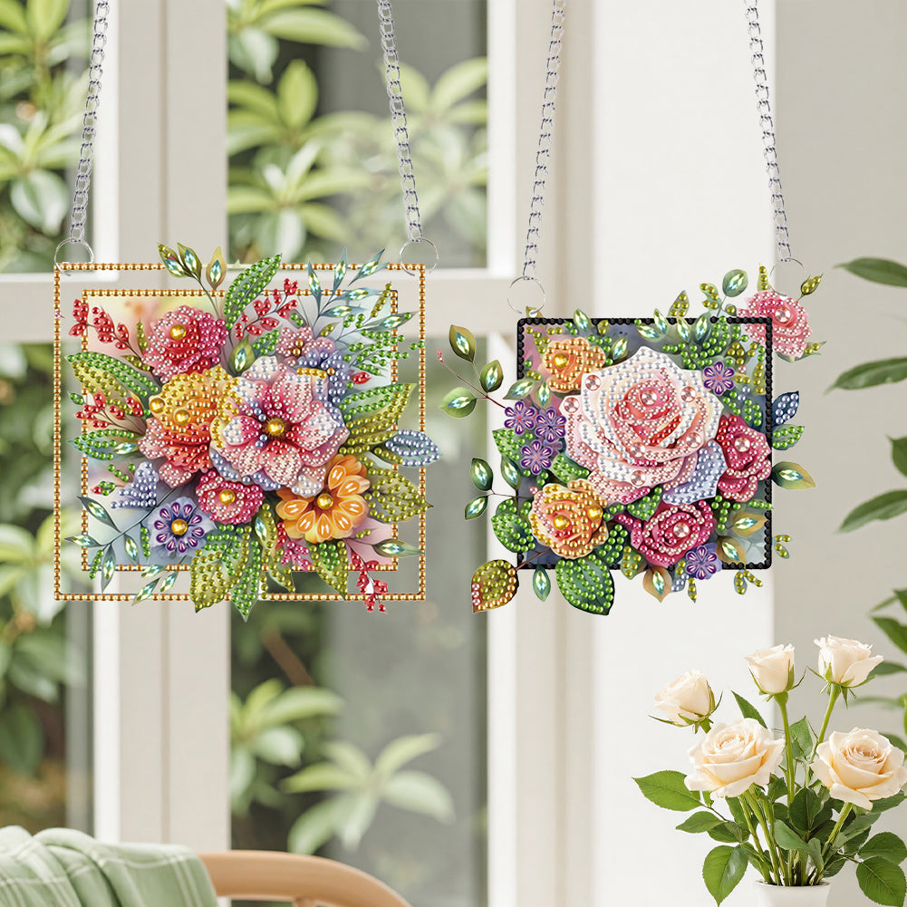2Pcs 2D/Flat DIY Flower Diamond Art Pendant DIY Home Decor Hanging Charm