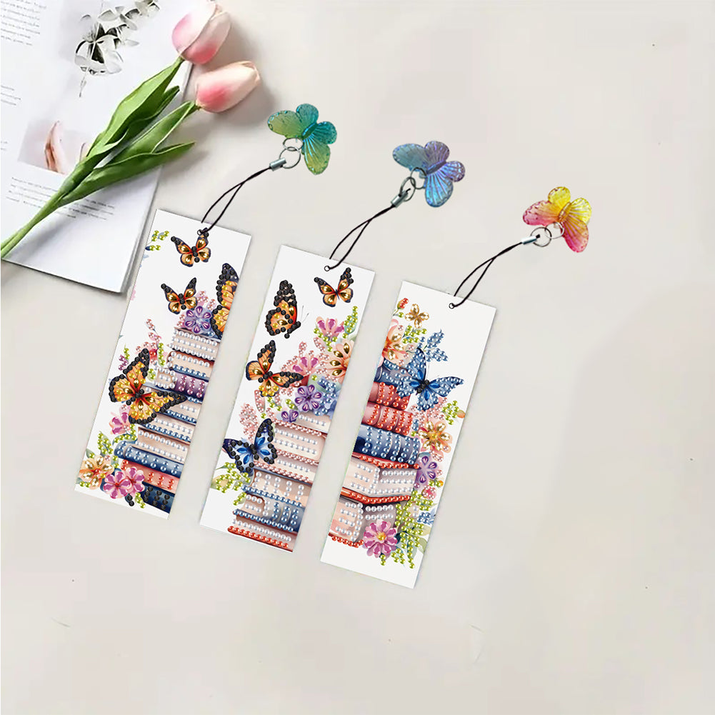 2. High-Quality Materials: These DIY bookmarks diamond painting kits are durable and long-lasting. The vibrant crystal diamonds and butterfly pendant reflect light beautifully, creating a dazzling and intricate appearance that enhances any reading experience.