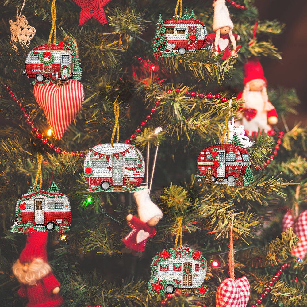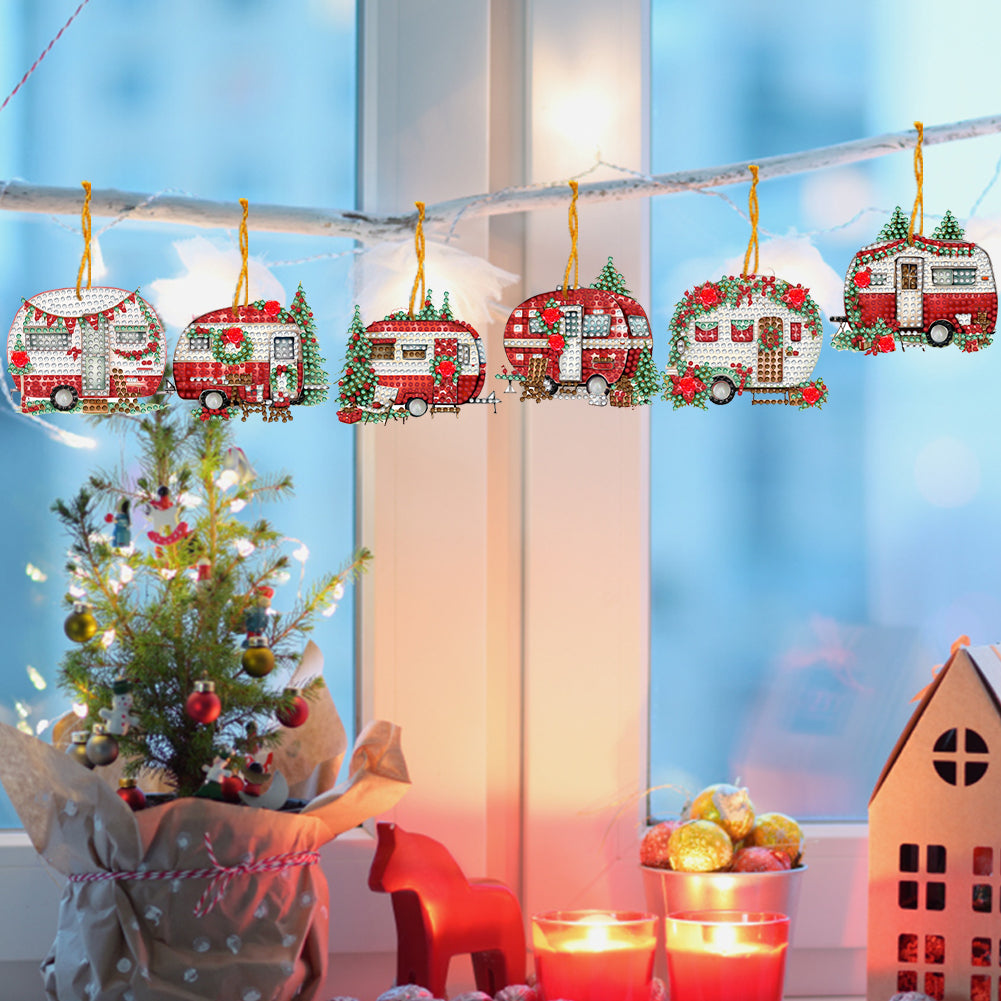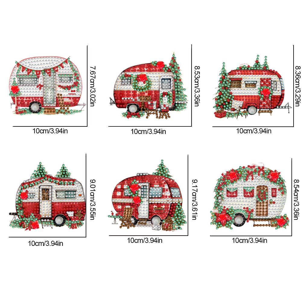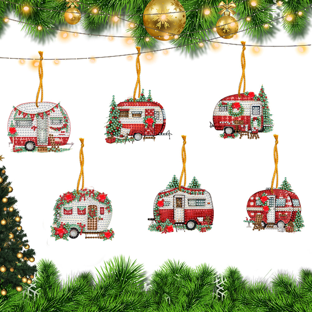 6Pcs Acrylic Special Shaped Christmas Red Car 5D DIY Diamond Art Hanging Decor
