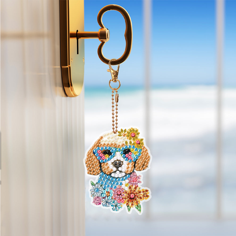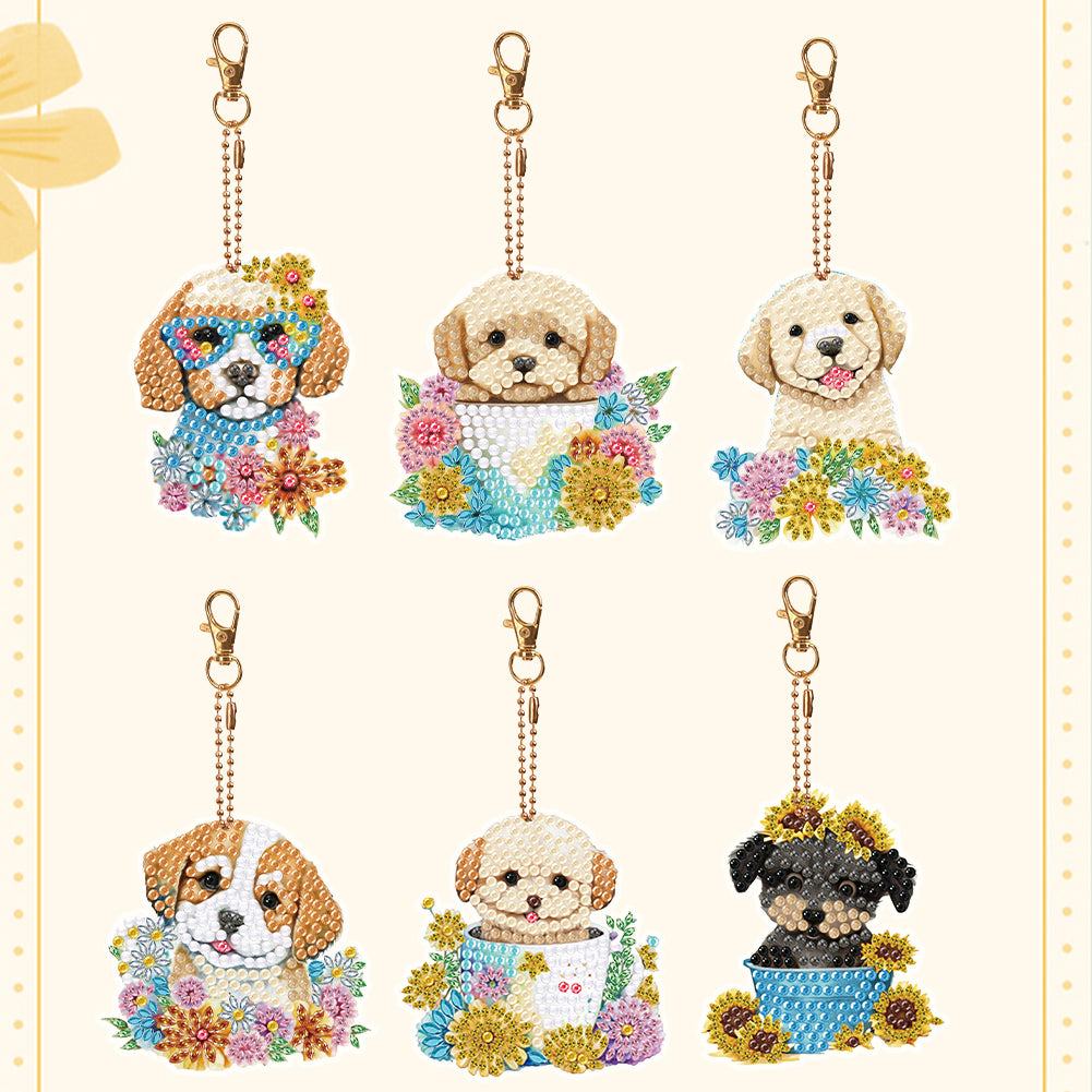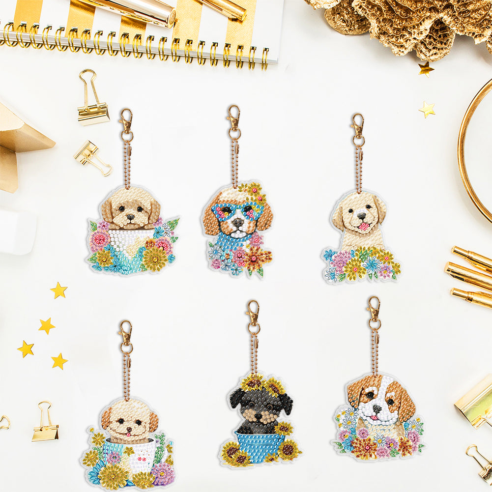 6PCS Double Sided Special Shape Diamond Art Keyring (Puppy)
