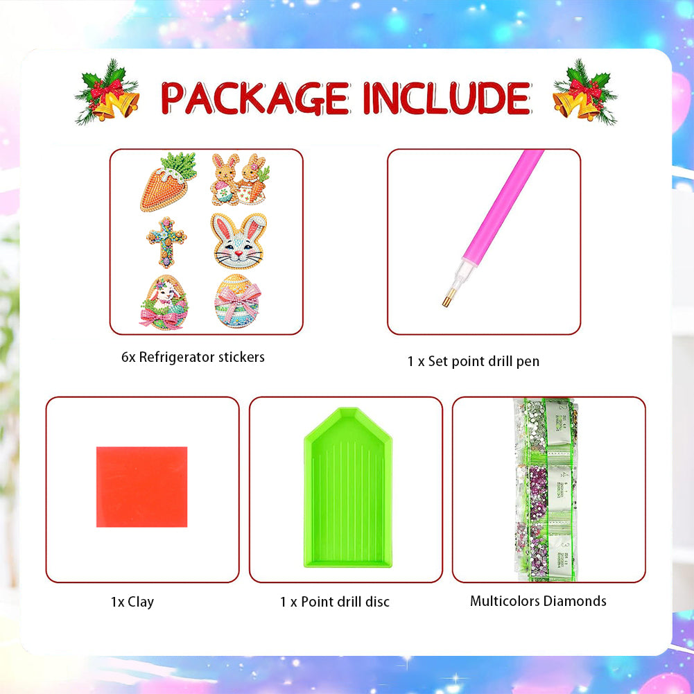 6Pcs Happy Easter Theme DIY Diamond Painting Magnets Kit for Art Crafts Gift