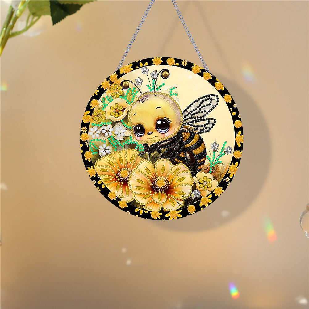 Bee Diamond Painting Hanging Decor Colorful Acrylic Diamond Drawing Hanging Ornament Animal Crystal Painting Ornaments for Kid DIY Craft