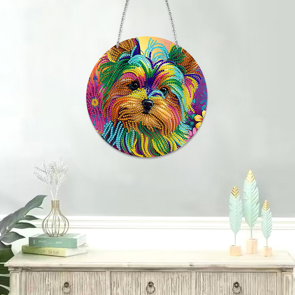DIY Crystal Diamond Pendant Single-sided 5D Round for Home Garden (Dog)