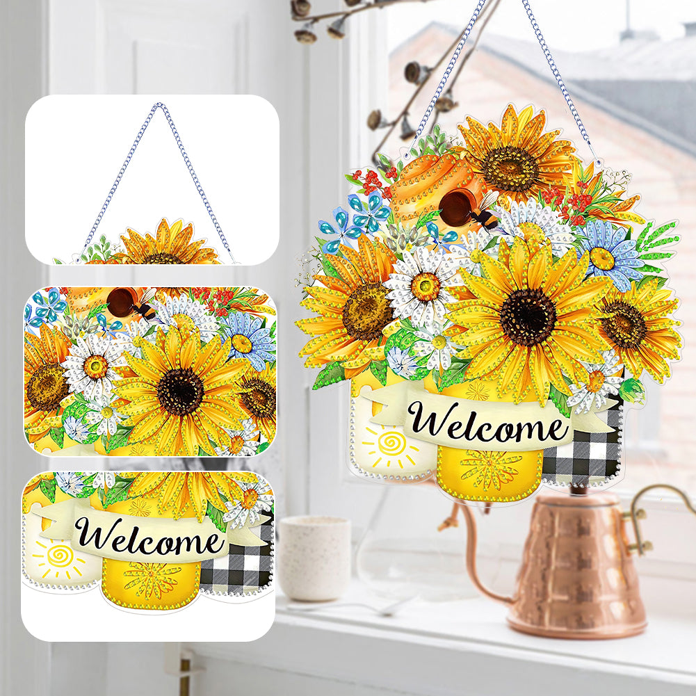 Double Sided Special Shaped Sunflower 5D DIY Diamond Art Hanging Decorations Rhinestone Diamond Art Window Pendants for Beginner