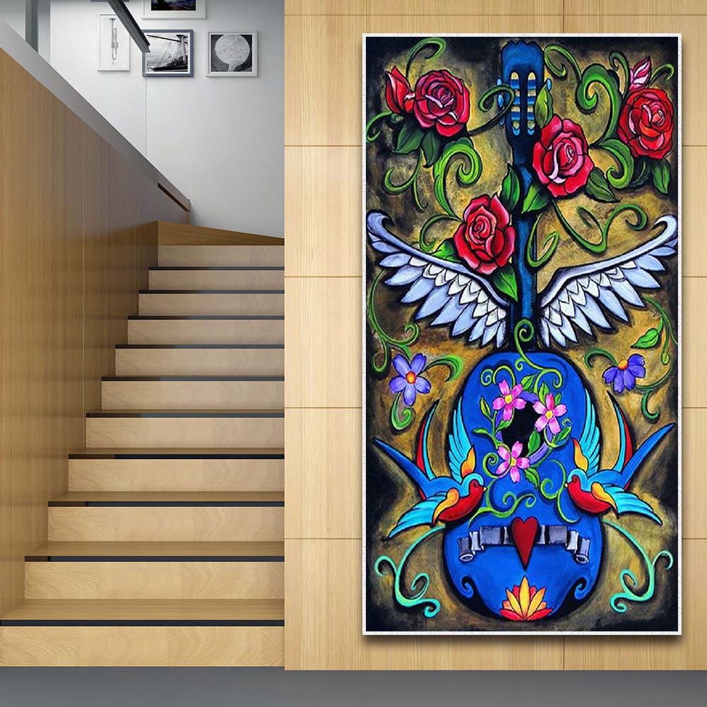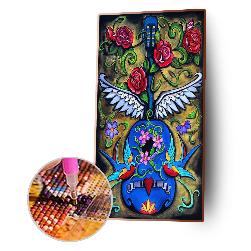 5D Wall Picture DIY Full Round Drill Diamond Painting Flowers Guitar Cross Stitch Embroidery Mosaic Craft Needlework Set Home Decoration