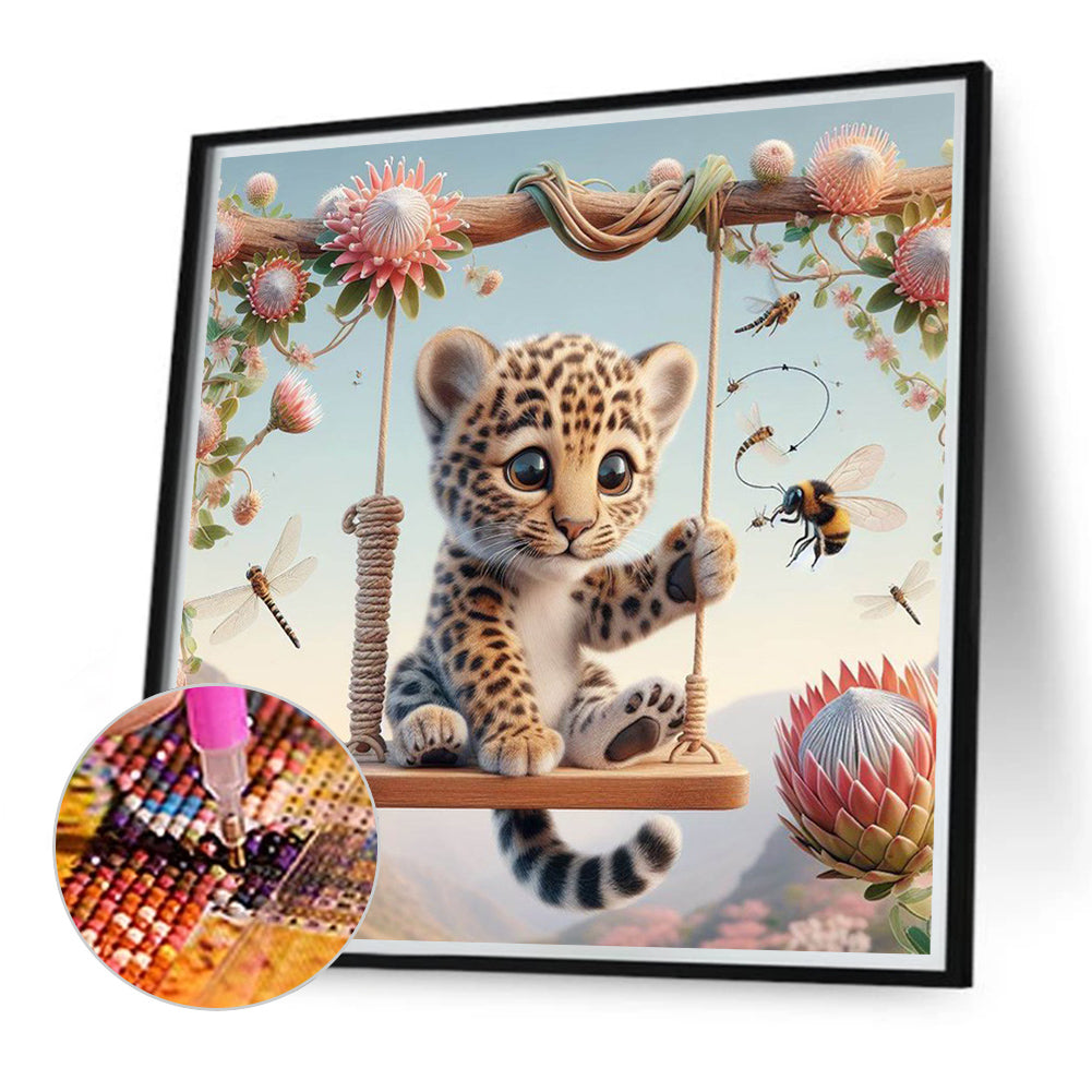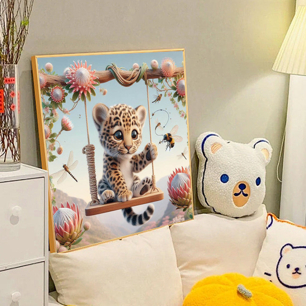Leopard On A Swing 40*40CM(Canvas) Full Round Drill Diamond Painting