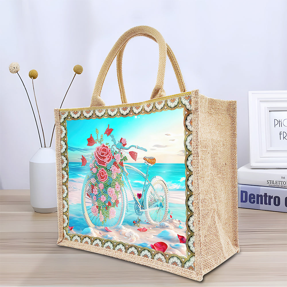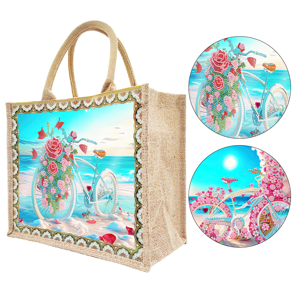 Linen Diamond Painting Handbag Reusable DIY Diamond Painting Purses Colorful Diamond Painting Tote Bag for Beginners/Adults/Kids Crafts Supplies