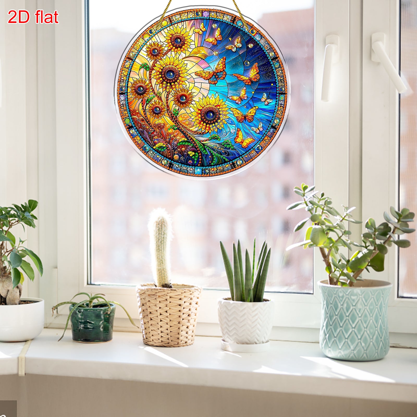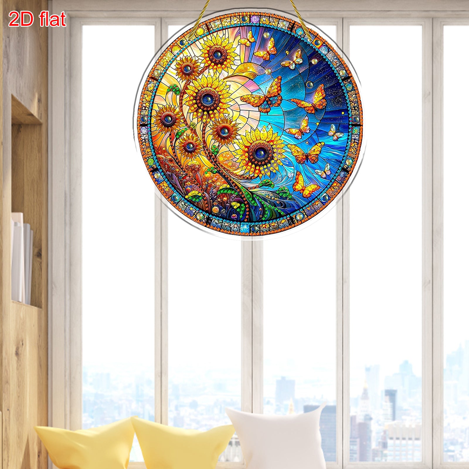 Sunflower Theme 2D Flat DIY Diamond Art Pendant Wall Decor for Home & Windows